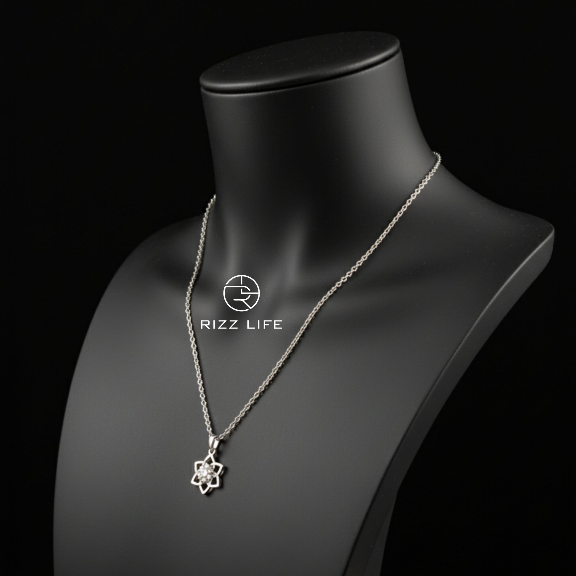 Discover the elegance of The Stellar Bloom White Gold Plated Chain Pendant, featuring an intricate starburst-inspired design that captures light beautifully from every angle. Crafted with high-quality white gold plating over sterling silver or premium metal, this pendant exudes sophistication and depth with its textured, radiant pattern. Measuring approximately 19.2 mm in height and 12.2 mm in width, it hangs on an adjustable chain for a perfect fit. Ideal for elevating any outfit, this pendant makes a stunning accessory for everyday wear or special occasions.